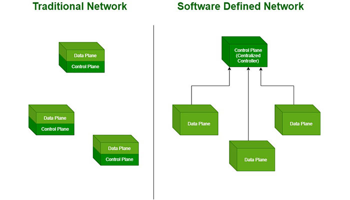 این فرآیند یک حرکت از معماری سنتی شبکه است، که در آن دستگاه های شبکه تصمیمات ترافیکی را براساس جداول مسیریابی پیکربندی شده خود می گیرند.